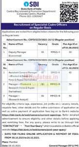 Refer detailed advertisement to ensure eligibility and other details before applying and remitting fees. For any query, please write to us through link “CONTACT US → Post Your Query”, which is available on Bank’s official website: