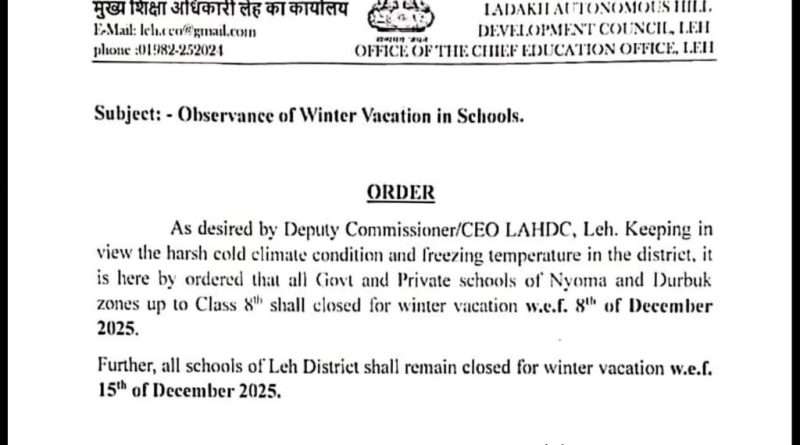 Read MoreLadakh Issues Winter Vacation Ladakh Issues Winter Vacation Order for Leh District Schools Due to Severe Cold 👉Join