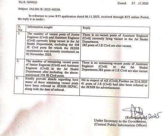 Read MoreJal Shakti Department Referred Posts to JKSSB Jal shakti department referred 41 posts of JE civil to Jkssb. R&B also