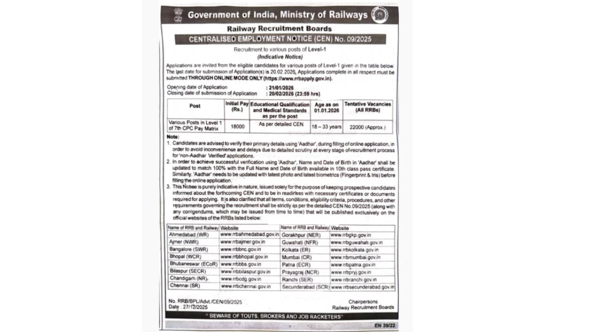 - 1 22195 Posts: RRB Group D Recruitment 2025, Apply Online