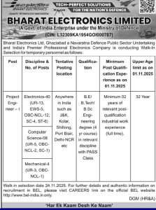 For further details and authentic information on recruitment in BEL, please visit the CAREERS link on the official BEL website: http://www.bel-india.in only.