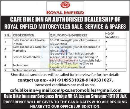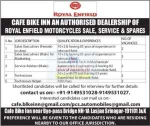 CAFE BIKE INN Job Recruitment Srinagar 2025