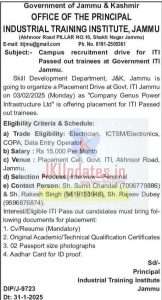 Campus Recruitment Drive for ITI Passed out Trainees at Govt ITI Jammu
