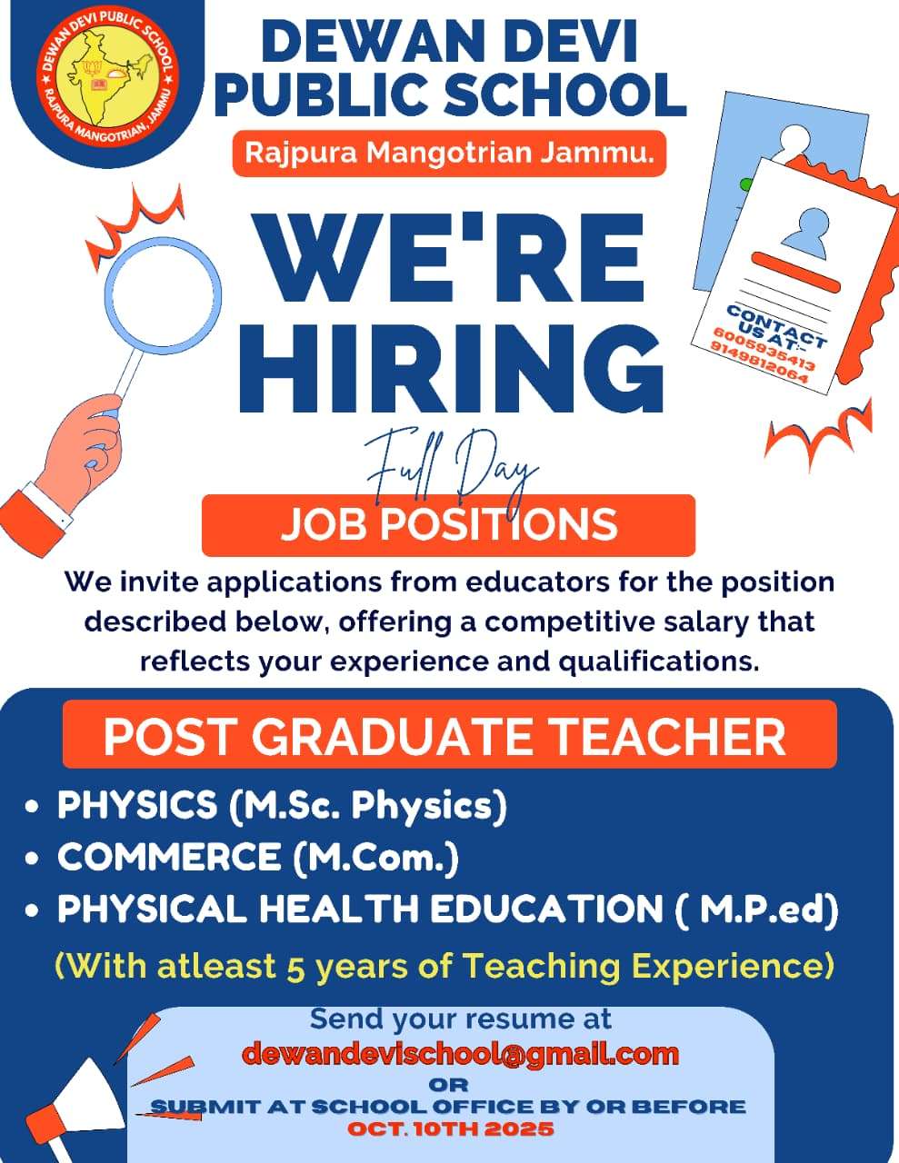 Jammu Kashmir JobsJobs in JammuSchool Jobs