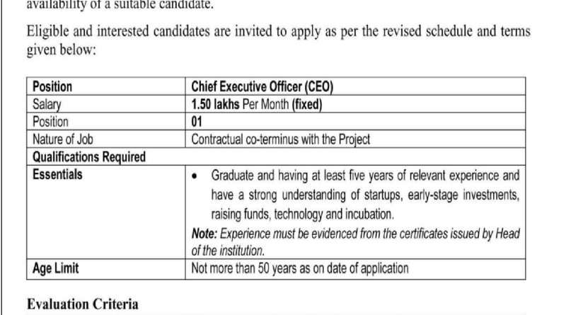 - Graduate and having at least five years of relevant experience and have a strong understanding of startups, early-stage investments, raising funds, technology and incubation.
