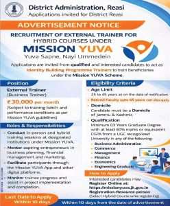 District Administration Reasi Opens Recruitment Under Mission YUVA