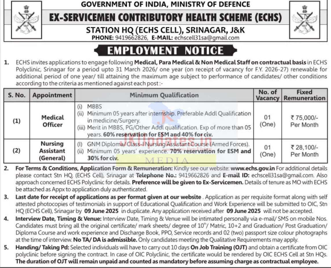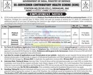 Applicants who meet the eligibility criteria must submit their filled application form (available on www.echs.gov.in) along with self-attested photocopies of testimonials and documents to the following: