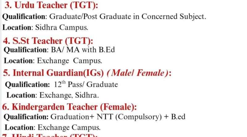 Qualification: Graduation + NTT (Compulsory) + B.Ed