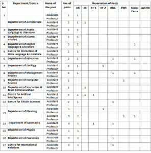 Online applications are invited from eligible candidates for the following posts as per details mentioned below in various Departments / Centres of the Islamic University of Science & Technology (IUST), Kashmir.