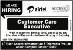 JK Airtel Customer Care Executive Jobs Recruitment 2025
