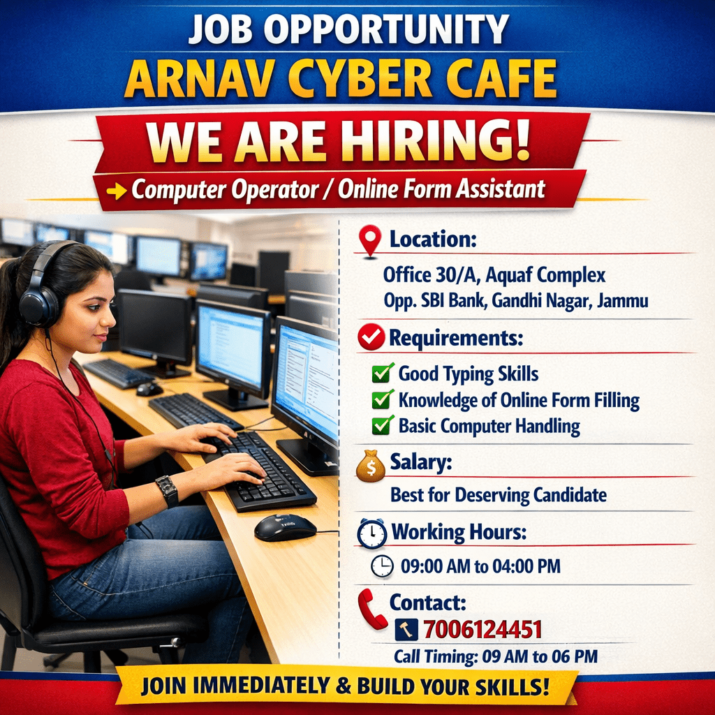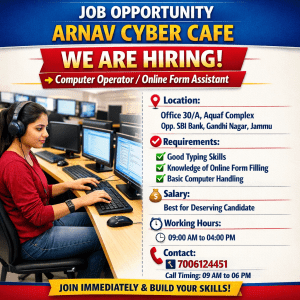 JOB OPPORTUNITY – ARNAV CYBER CAFE Jammu