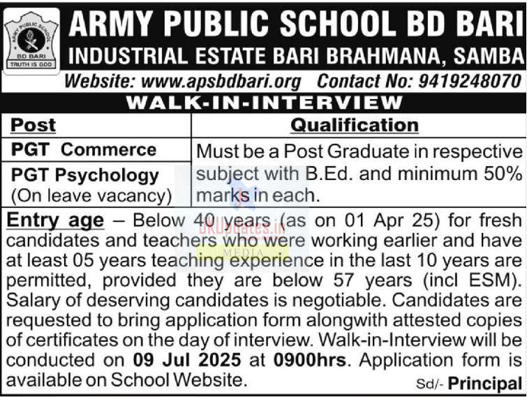 Walk-in-Interview will be conducted on 09 Jul 2025 at 0900 hrs.