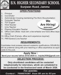 Job Recruitment in B.N Higher Secondary School