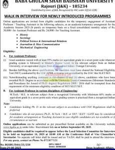 Online applications can be submitted as per prescribed format available on the University website www.bgsbu.ac.in under Jobs/Recruitment link on or before September 05, 2025.