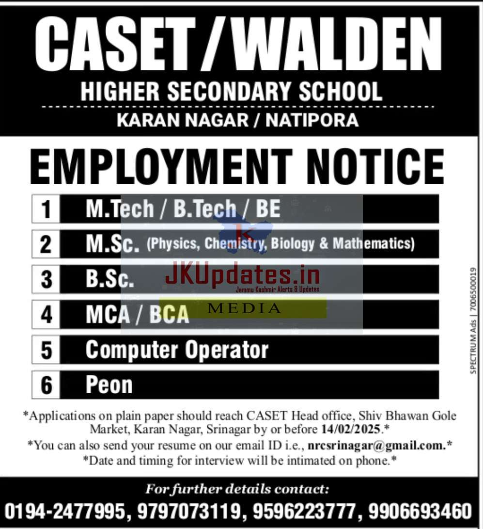 *Applications on plain paper should reach CASET Head office, Shiv Bhawan Gole Market, Karan Nagar, Srinagar by or before 14/02/2025.