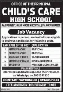 Job Recruitment in Child Care High School