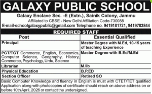 PGT/TGT (Commerce, English, Economics, Computer Science, Geography, History, Commerce, Psychology, Urdu, Science)