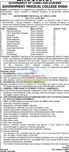 Applications are invited from PSC/Non-PSC doctors, for the tenure posts of Tutor / Demonstrator / Senior Resident / Registrar in the following disciplines of Government Medical College, Doda for a period of one year extendable up to three years in terms of SO-364 of 2020 dated 27-11-2020.
