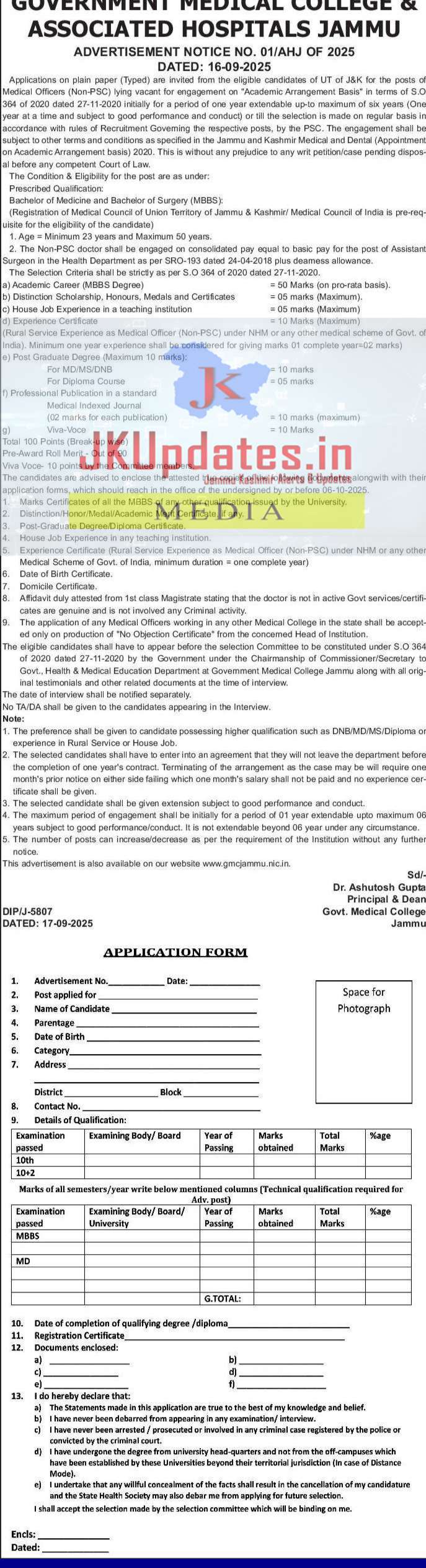 This advertisement is also available on our website www.gmcjammu.nic.in.