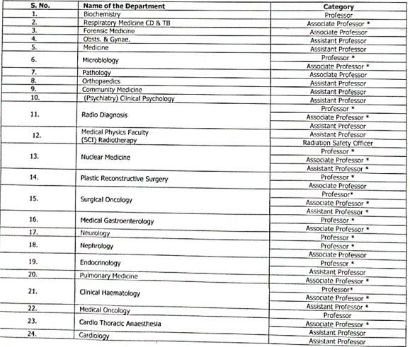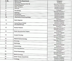 1. The applicant for the posts of Professor/Associate Professor/Assistant Professor (including) retired Faculty members of Govt. Recognized Institutes /Hospitals) should not be of more than (67) years of age as on the date of issuance of notice. This shall be strictly as per the provision of SO 364.