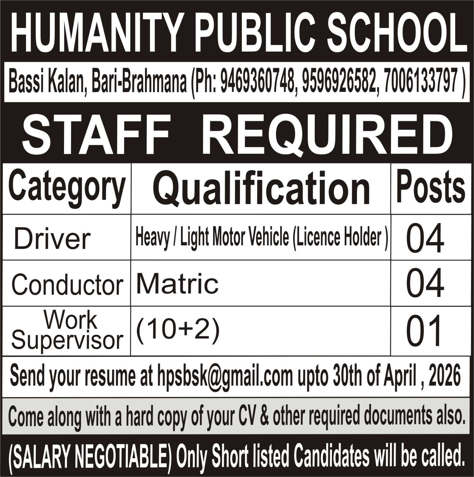 Job Recruitment in Humanity Public School
