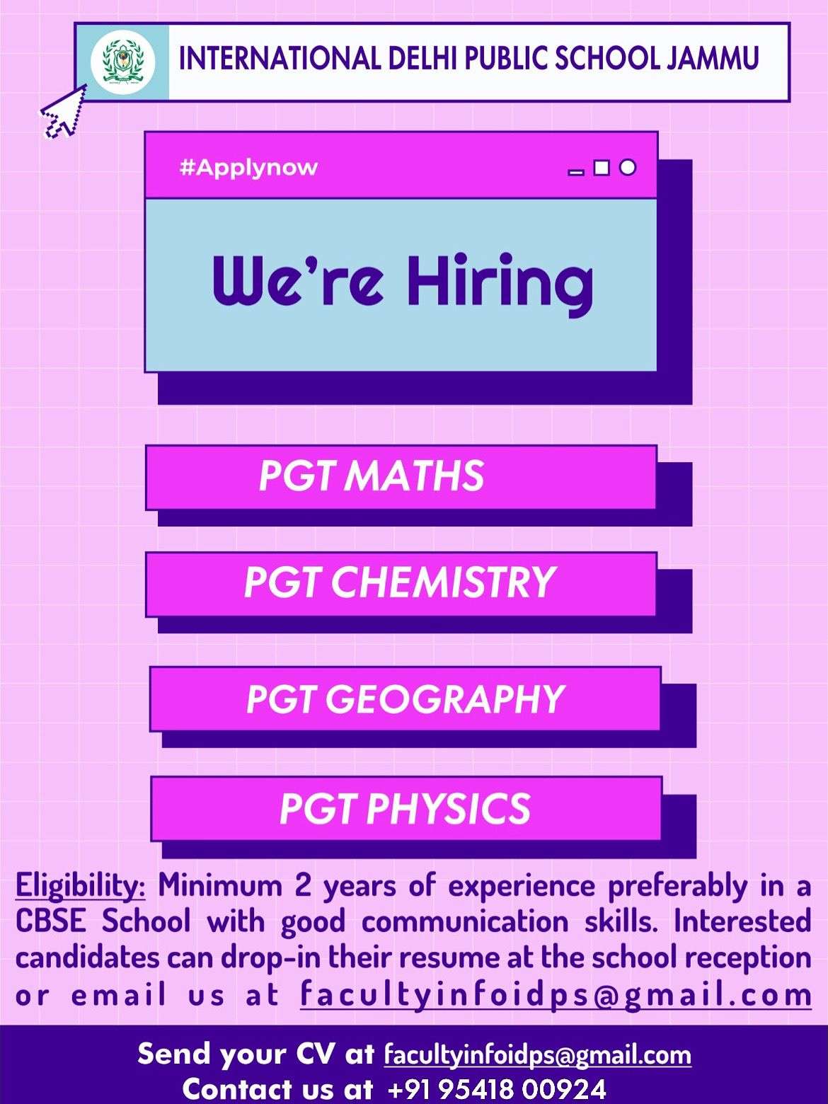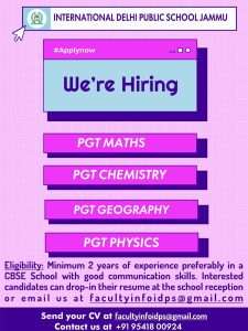 Job Recruitment in International Delhi Public Schoolย Jammu