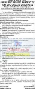 For further details visit Camp Office of the JKAACL at Canal Road, Jammu during office hours. Detailed EOI is available at website of the Academy: jkaacl.jk.gov.in.