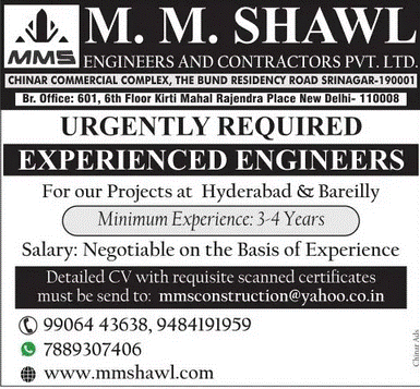 URGENTLY REQUIRED EXPERIENCED ENGINEERS