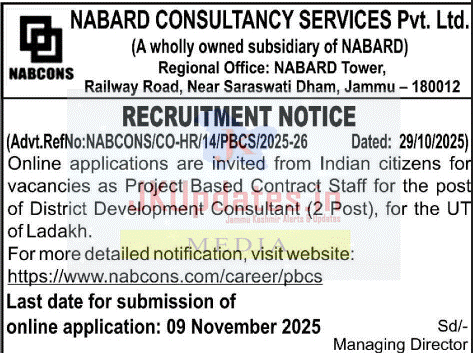 (Advt. Ref No: NABCONS/CO-HR/14/PBCS/2025-26) Dated: 29/10/2025