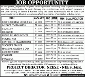 An incorporated, progressive and public sector organization functioning since 25 years for education and other national priorities. We require following posts to enhance our worthy venture’s expansion in our union territory of Jammu & Kashmir. Salary and added remunerations will be fixed as per Government norms & budget conveniences after the completion of candidate’s probation period.