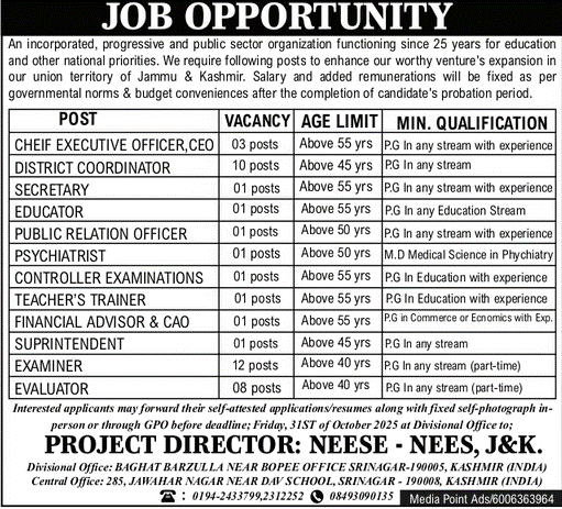 Job Recruitment in NEESE – NEES, J&K