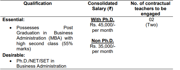 Applications are invited on a prescribed format (Annexure – 01) for engagement of Contractual Teacher / Faculty on Academic Arrangement basis for teaching to the students of PG/Ph.D. degree programmes in the discipline of AgriBusiness Management. Application form must be accompanied by Rs. 1000/- as a Demand Draft drawn in favour of HoD, AEABM payable at Jammu and should reach the office of Agricultural Economics, FoA, SKUAST-J on or before 22nd December, 2025 upto 5.00 PM through Speed post only.