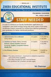 Job Recruitment in Zikra Educational Institute