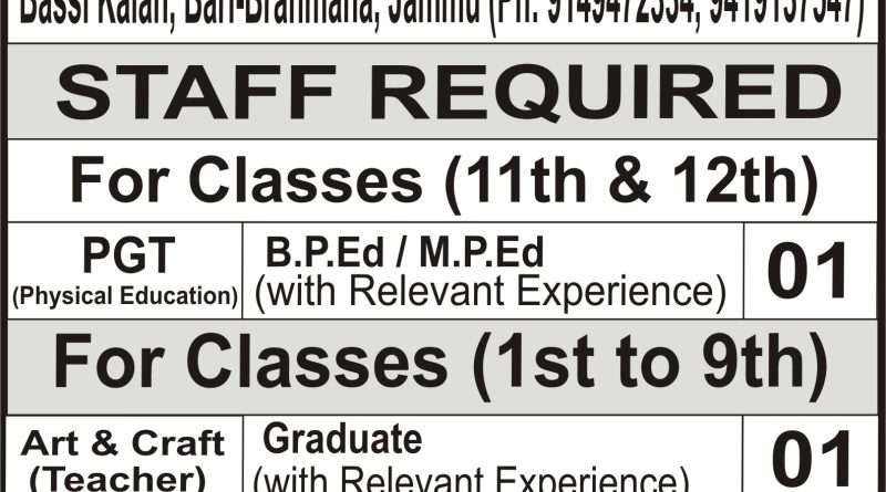 JOB VACANCY – HUMANITY PUBLIC SCHOOL, JAMMU