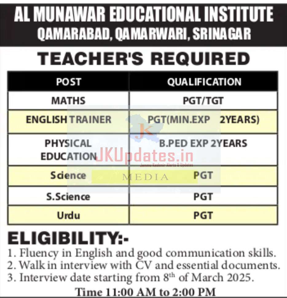 Jobs in AL MUNAWAR EDUCATIONAL INSTITUTE , SRINAGAR