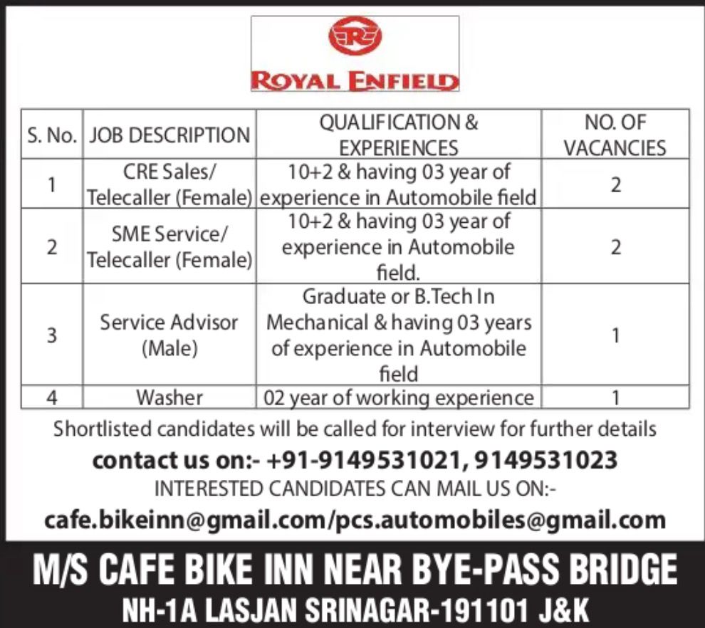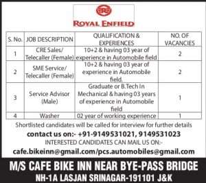 Jobs in Cafe bike Inn Royal Enfield