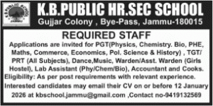 Jammu Jobs K.B. Public Higher Secondary School Jammu Jobs.