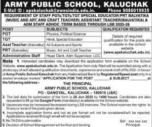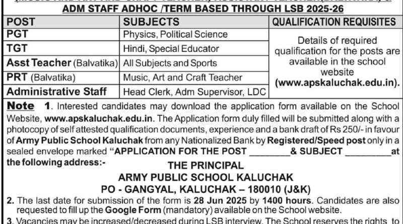 of Army Public School Kaluchak from any Nationalized Bank by Registered/Speed post only in a