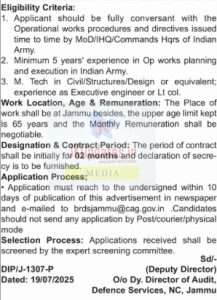 Minimum 5 years’ experience in Op works planning and execution in Indian Army.