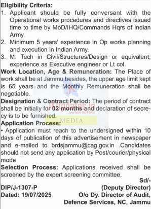 The Place of work shall be at Jammu besides, the upper age limit kept is 65 years and the Monthly Remuneration shall be negotiable.
