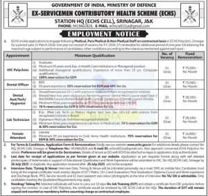 Recruitment in ECHS SRINAGAR, J&K