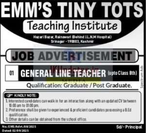 Preference shall be given to experienced & proficient candidates possessing a B.Ed qualification.