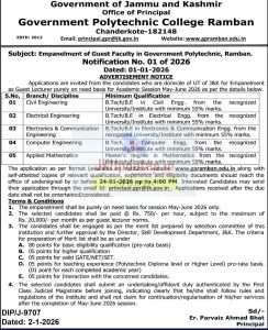 Empanelment of Guest Faculty in Government Polytechnic, Ramban.