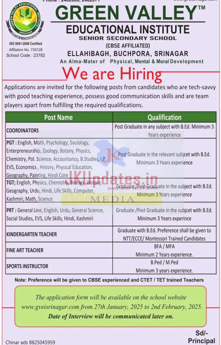 The application form will be available on the school website www.gveisrinagar.com from 27th January, 2025 to 2nd February, 2025.