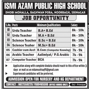 Recruitment in ISMI AZAM PUBLIC HIGH SCHOOL