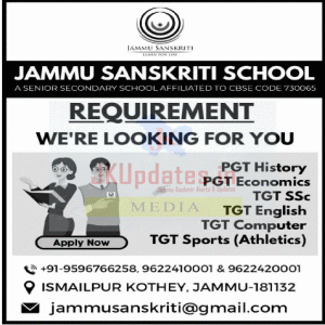 Recruitment in JAMMU SANSKRITI SCHOOL