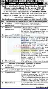 Walk in interview for Hostel Superintendent (Female) & Matron on contract basis for the session 2025-26