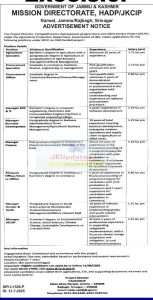 Recruitment in JK MISSION DIRECTORATE, HADP/JKCIP