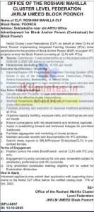 Advertisement for Block Anchor Person (Contractual) for Block Poonch