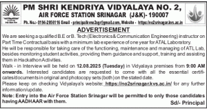 Recruitment in Kendriya Vidyalaya No. 2 Srinagar